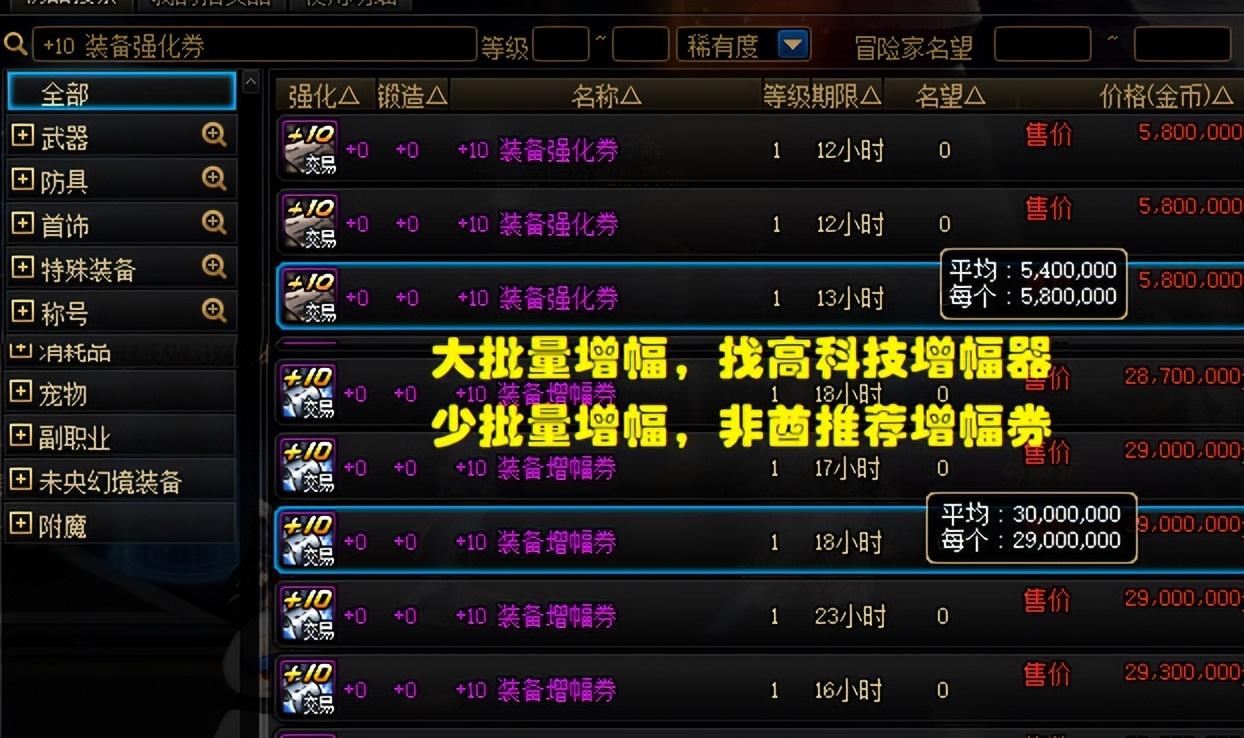 【4、增幅券/强化券】,+10强化券600万左右,+10增幅券2900万左右。