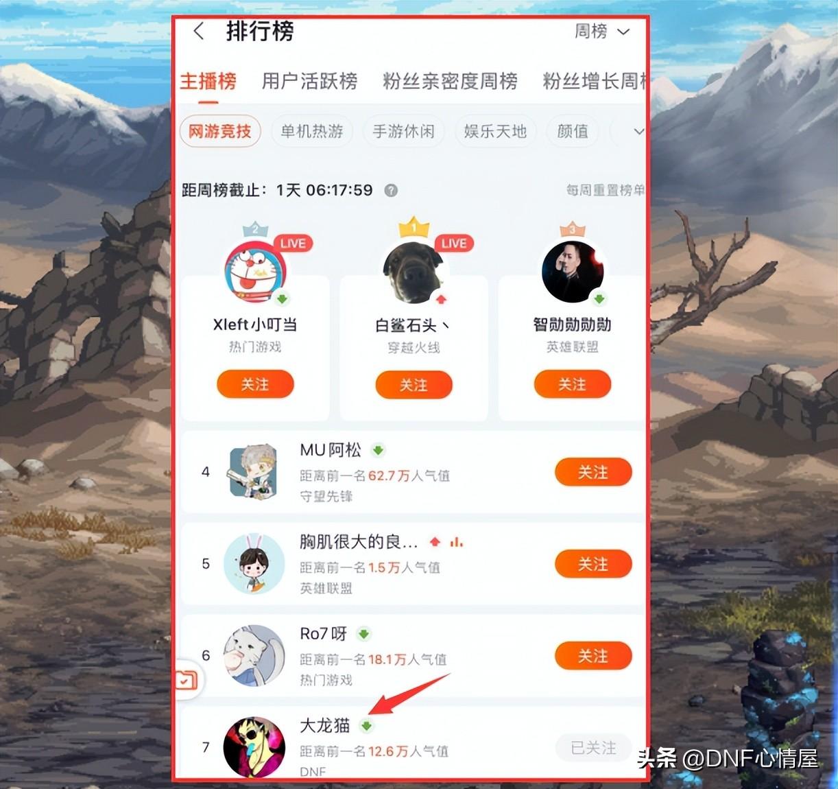 那么是否意味着,大龙猫的工资收入,还计入在DNF板块排名上呢?要是这样的话,对DNF板块的主播来说,就是一个很大的压力,有“猫哥”的存在,集体排名会下降一个名次。