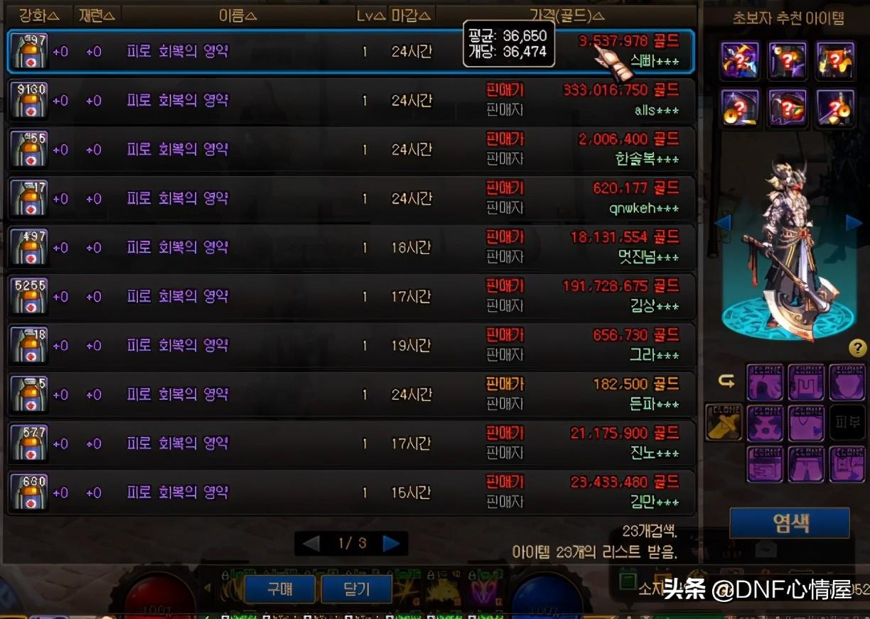 韩服“光头药剂”和疲劳值物价!拍卖行并不贵