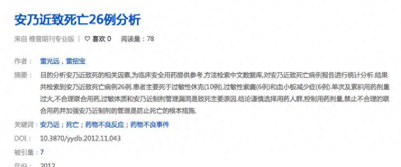 退烧药安乃近走出药柜:从神药到药品注销安乃近,这个小时候用来退烧的药品,是80、90后家长们都不会陌生的。虽然它难以下咽,吃下去总是让人觉得黏在嗓子里,但却是老百姓家中常备的退烧药,几代人都信任它的功效。然而最近的一份《公告》却注销了安乃近片的注册证书,这让我们不禁思考,安乃近这个几代人印象中的退烧药在药品市场上走下神坛,是否有征兆?其实早在1982年,原卫生部就发布了关于淘汰药品的通知,其中淘汰了“复方安乃近片剂”,但保留了“安乃近片”等其他安乃近产品。安乃近属于吡唑酮类解热镇痛药,不良反应主要以血液系统为主,可能引起粒细胞缺乏症、血小板减少性紫癜、再生障碍性贫血等。此外,安乃近还可能引发严重过敏反应,如重症药疹、过敏性休克等。近年来,网络上出现了很多关于安乃近不良反应的报道,其中包括了导致小儿死亡的案例以及致死案例的分析。