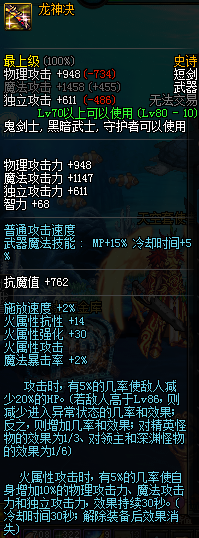 相信很多勇士在DNF9周年,签到11周和绝望之塔的短剑史诗罐子中开过不少的龙神决,那么龙神决在90版本中还能否触发削血效果呢?结果小编新增地轨中心副本的实测,除了时间广场和兽人峡谷,剩下的副本触发的概率大大的减小,近乎没有触发,但是增加10%三攻的特殊效果倒是一直触发,如果没有趁手的武器还是勉强可以穿戴的。
