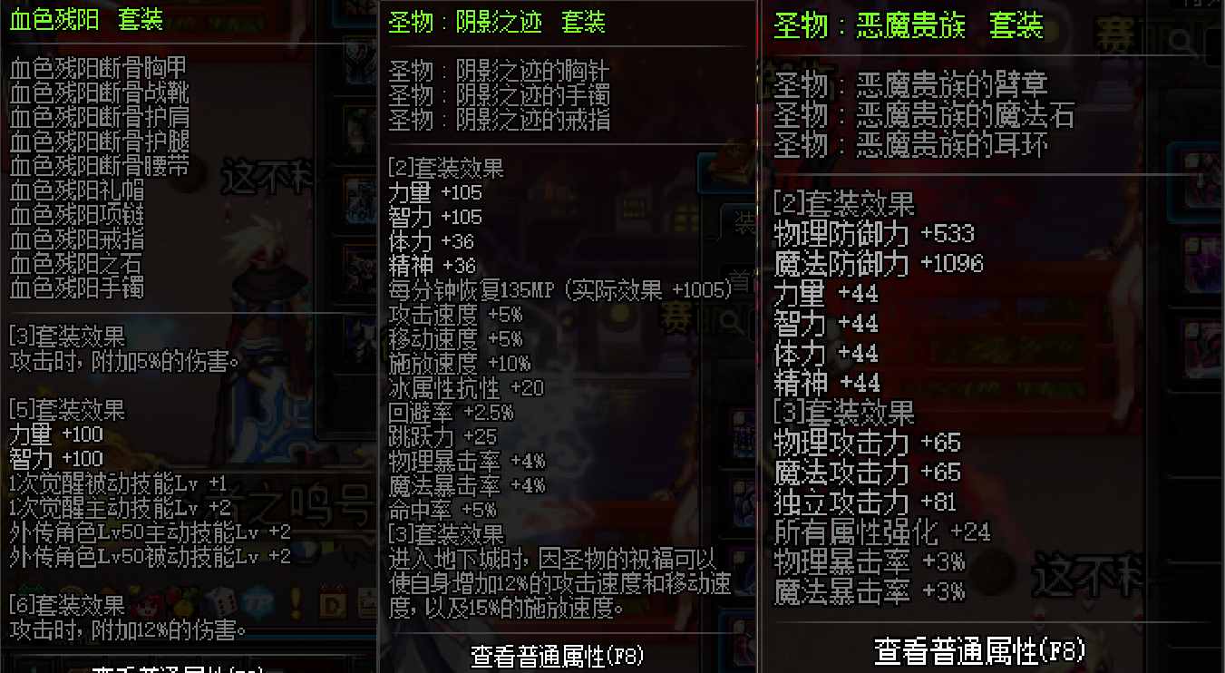 血色残阳6件套+圣物首饰三件套+耳环魔法石随意全速度艾肯套圣物防具+圣物首饰+圣物特殊装备三件套任意散搭史诗我这里优先推荐兰总套加圣物套,制作周期非常短