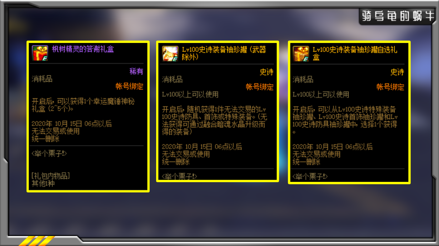 所以新角色,要想获得伊斯大陆、次元回廊和机械崛起,3个外传贴膜盒子,就不要使用“完美100级任务券”。