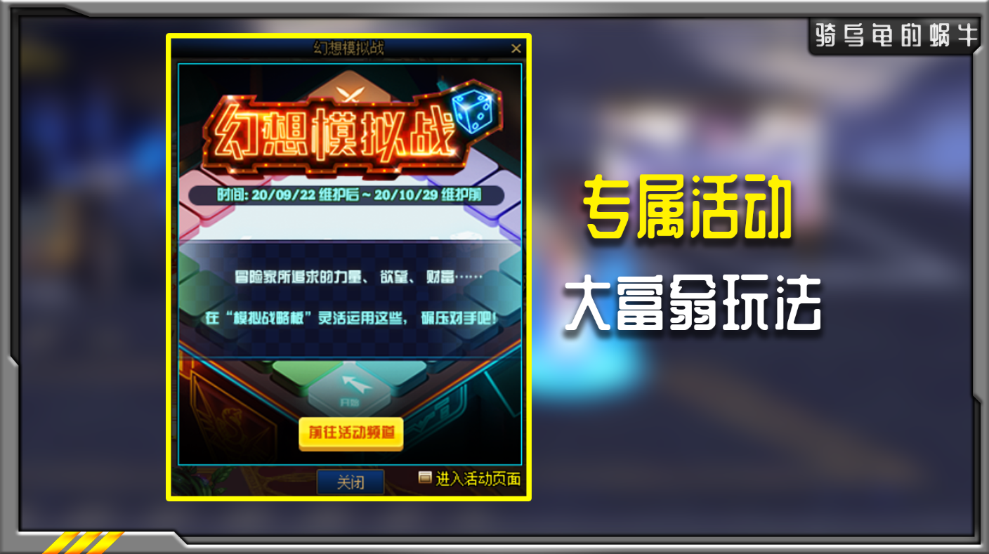 金秋版本的专属福利活动,活动是大家非常熟系的大富翁玩法,不过可惜的是每天只能进行一次游戏,而且花费的时间非常短,基本上每天大家都能愉快的进行一场游戏,通过完成任务获得【模拟币】兑换奖励。