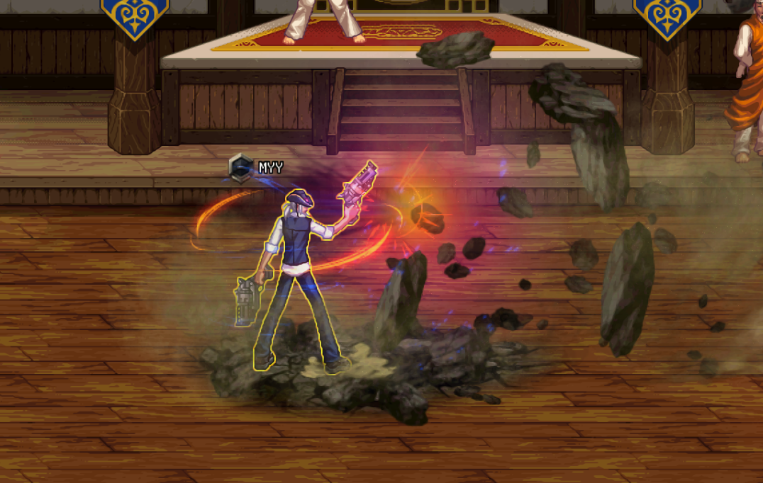第一个【回头一击】,在学习被动的情况下,使用回头一击的时候会快速的回身朝地面上进行射击,子弹跳弹弹射对周边的目标造成伤害,而这一个技能的优化保证了回头一击可以攻击到一定的Y轴范围内的敌人。