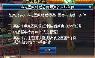 添加这个条件的原因很明显,就是至少要去通关普通卢克才能进入到团队模式频道 。