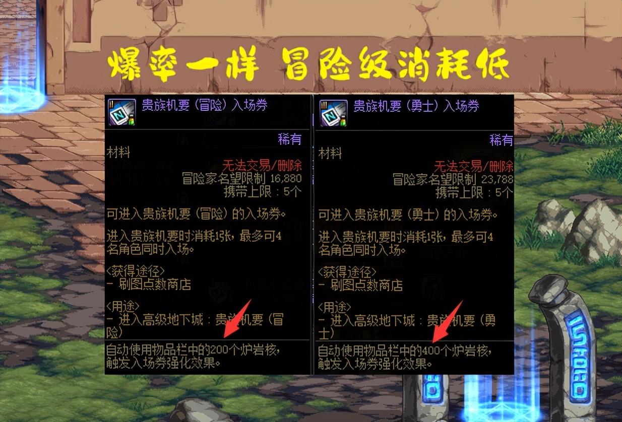 这里再补充一个细节,如果仅仅只是为了自定义而打贵族机要,更推荐“冒险级”,不仅只需要40刷图点,而且名望要求也更低(16880即可购买门票),更关键的是炉岩碳消耗也更少,勇士级需要400炉岩碳,而冒险级只需要200炉岩碳。