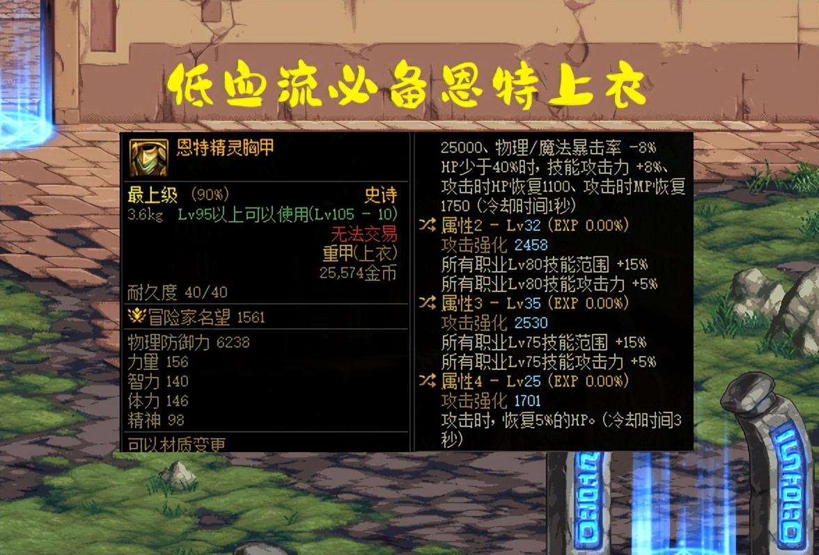 对于绝大多数玩家,尤其是最近比较火热的“攻速低血流”,非常依赖恩特上衣的加持,这样看来,打贵族机要也是个不错的选择了!