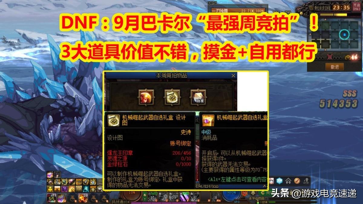 DNF:3大道具价值不错,9月巴卡尔“最强周竞拍”!摸金+自用都行