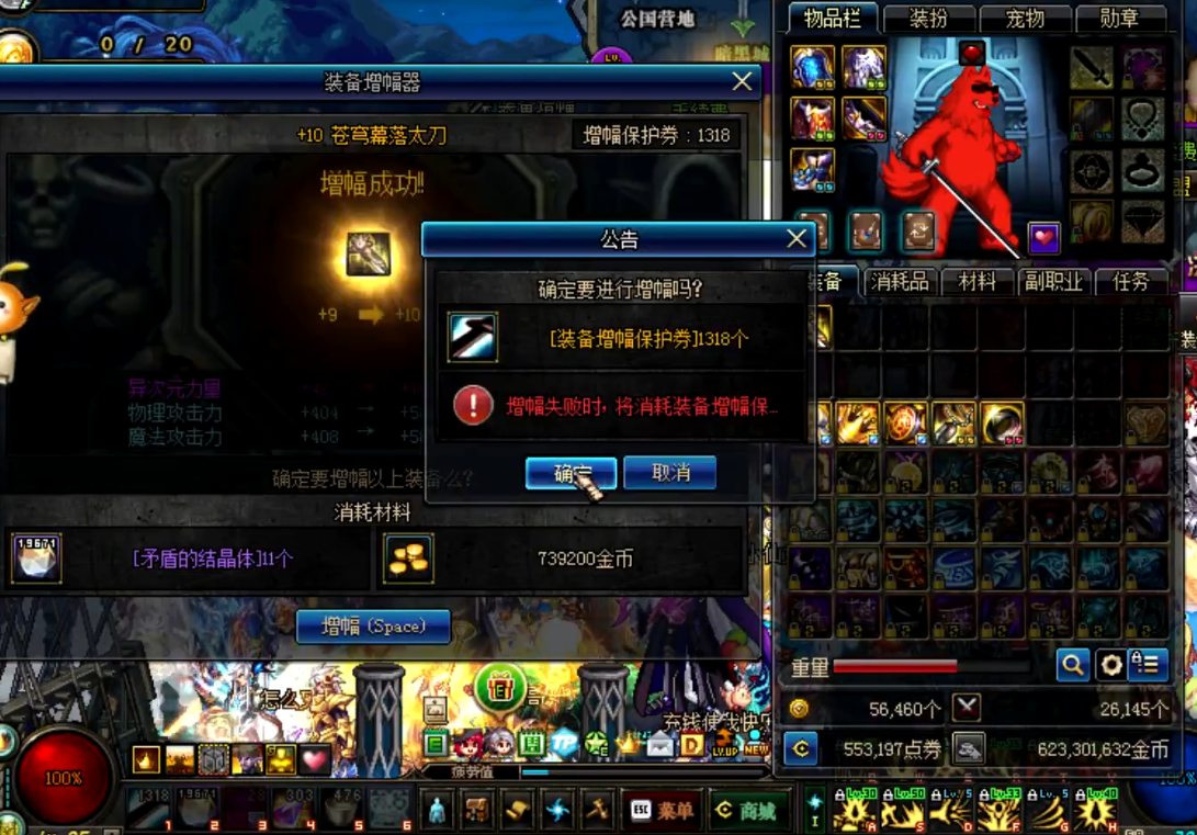 咱不说右边的装备全回到+15,现在把苍穹太刀+15就已经谢天谢地了。小编凌晨3点半发现老吊还在熬夜直播增幅太刀,真是好拼!小编稍微计算了一下,单小编看到消耗的保护券就有2000-3000张了,仅这一项花费就30-45万人民币。