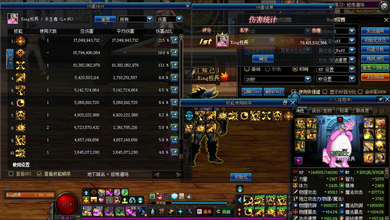 这位大佬玩的是复仇者,一身万世套、恍惚套,似乎右槽还差塔石碑。根据冒险团来看,在没有毕业A套前,没有打乌龟和卢克,全凭练小号,然后清毕业票把大号养起来的…