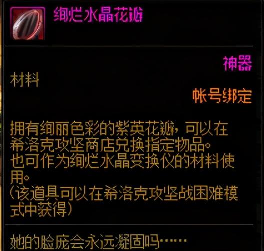 花瓣/账绑花瓣:指希洛克攻坚战中可获得的材料紫英花瓣/精巧的紫英花瓣。