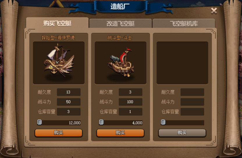 当勇士们初次进入大飞空时代时,将拥有一艘探险型飞空艇-海伊罗德以及1000银币。后续通过不同城镇的造船厂,可以购买到不同类型的飞空艇,而飞空艇是我们探索大飞空时代的核心道具,请勇士们务必利用好它。