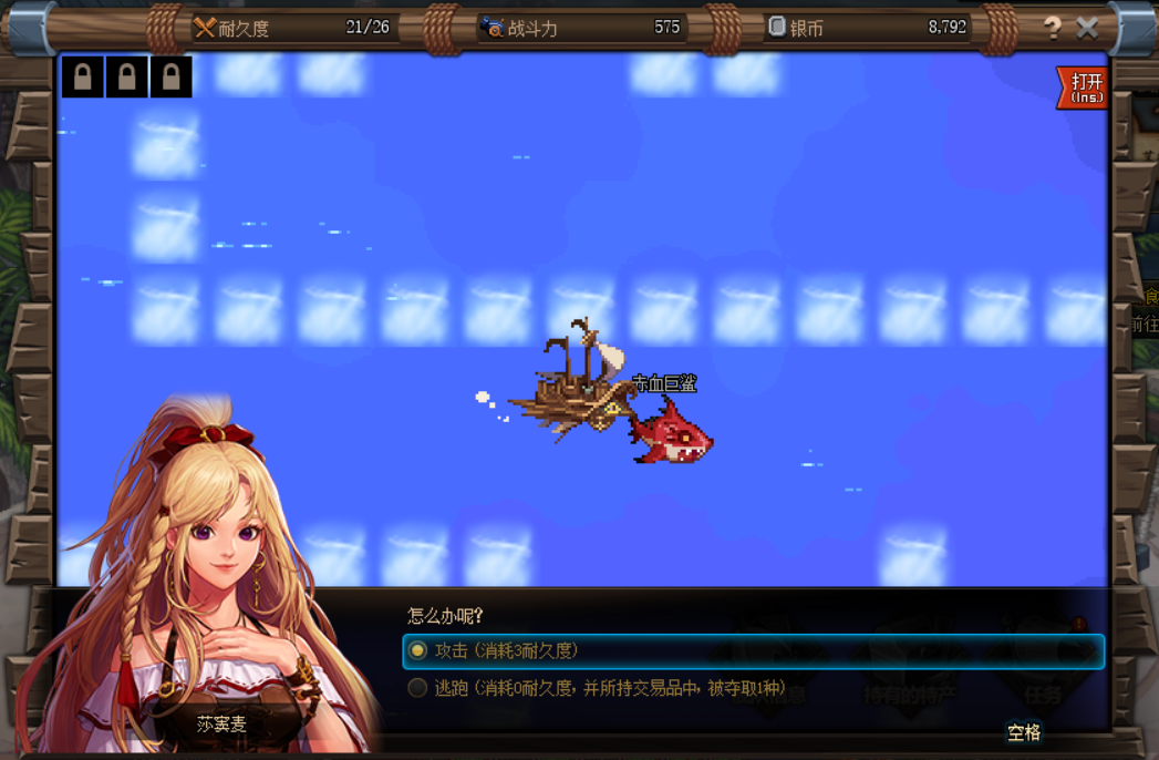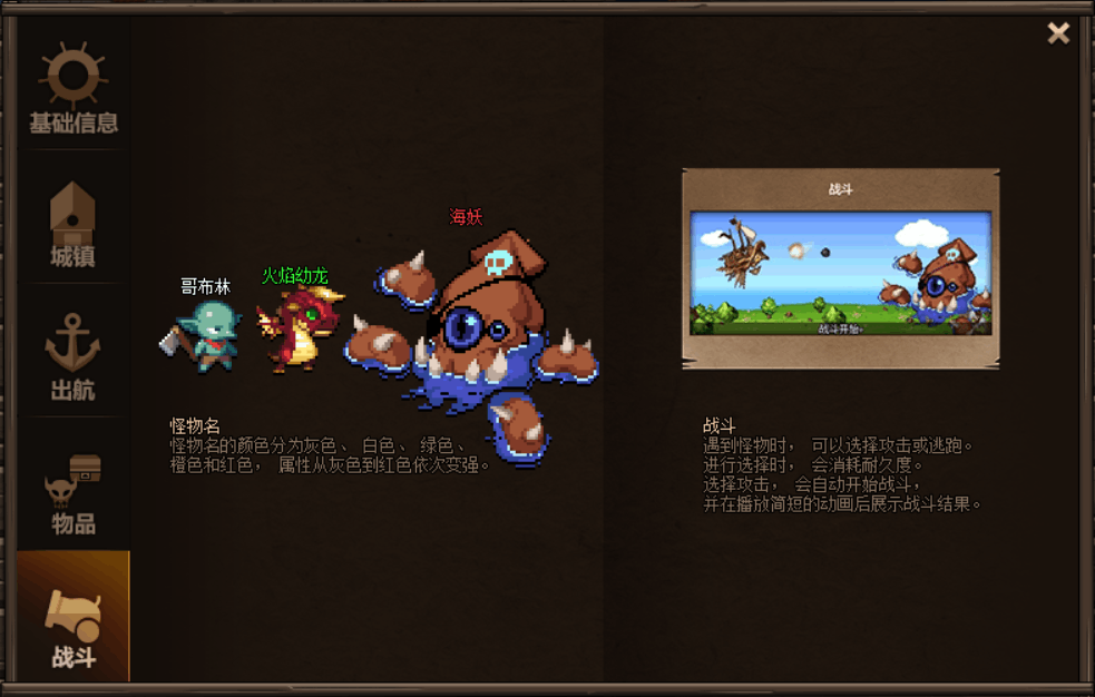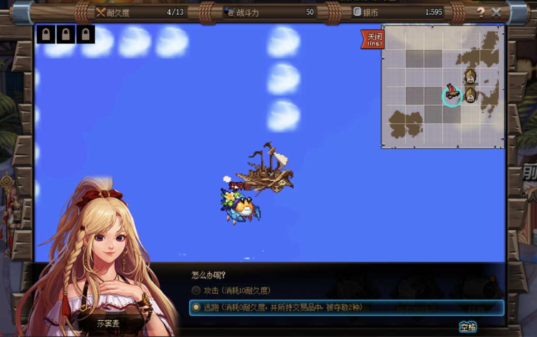 若不小心遇到怪物,但我们并不想挑战他,也可以选择逃跑,逃跑不会损失银币和耐久度,但会损失一定量的特产(若未携带特产,则不会损失)。需注意的是,面对头目类怪物时,无法成功逃跑,因此勇士们需谨慎航行。