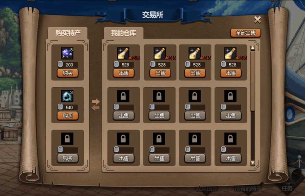 在交易所中,我们可以买到不同的特产,而每到达一处城镇,其交易所中售卖的特产均不相同。同时,不同的特产在不同城镇中,其售价也不尽相同。因此,我们可以利用这一贸易差,来赚取银币,这一玩法也是大飞空时代中的核心赚钱方式之一。