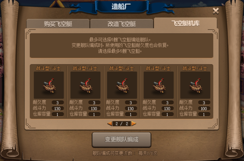 在大飞空时代的页面上方,我们可以观察到目前整支舰队的战斗力。与耐久度相同,想要提升舰队战斗力,也需购买新的飞空艇。