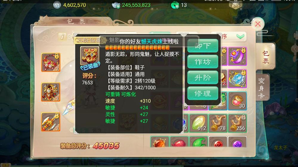 只要装备补天就可以了,其他的还要点钱,剩下什么都不需要了,你说的弹出洗绿字的筐筐里面的内容是什么?