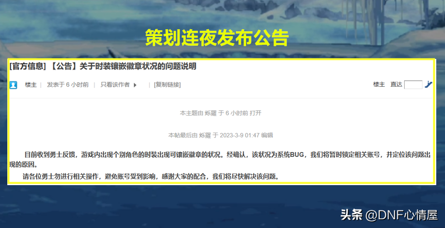 DNF:神器装扮能镶嵌徽章了!策划连夜发布公告,已锁定账号修复