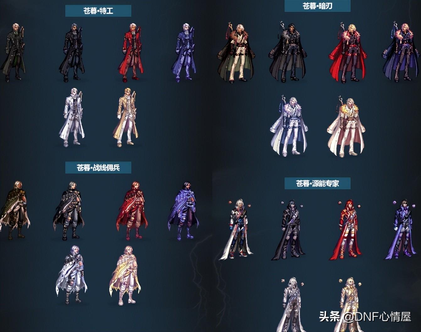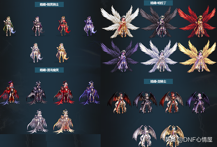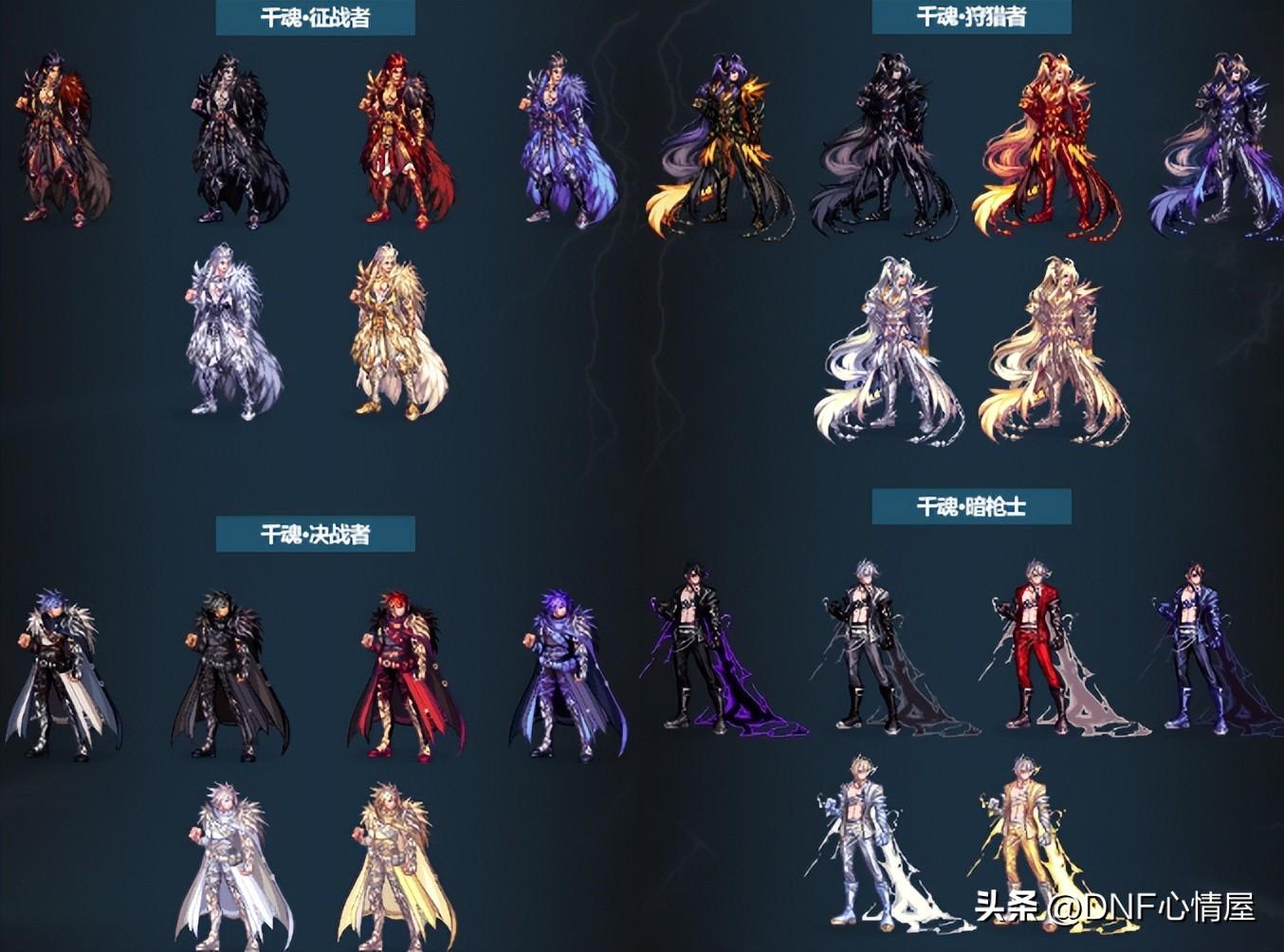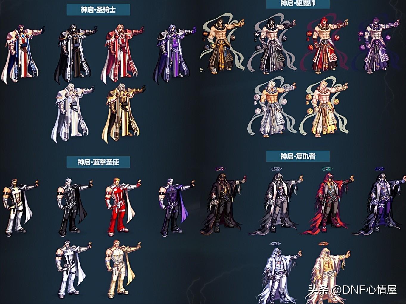 1、鬼剑士三觉装扮。 鬼剑士系列职业,一共包含10个角色,每个都有特定的三觉外观,除了4款普通的外,还有2款特殊类型。