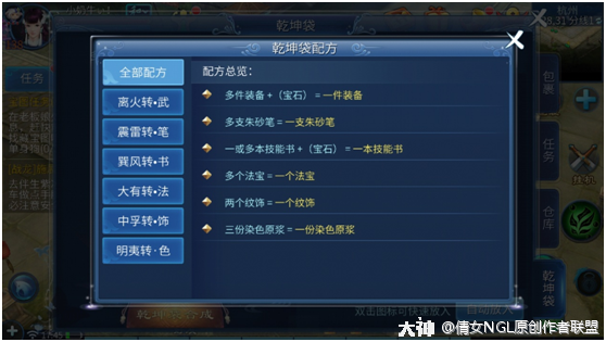 希望能够帮助你,谢谢!在商城买道具,然后一起和武器放入乾坤袋里面