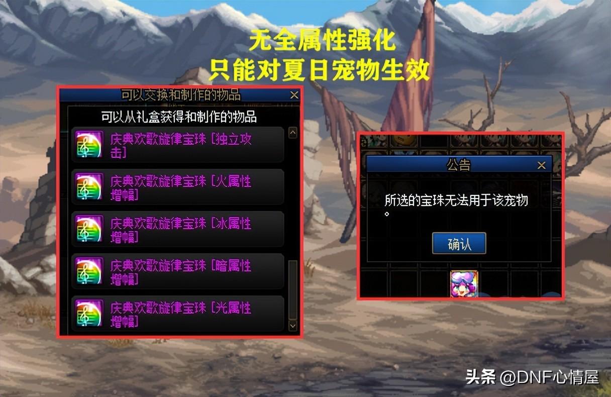 且获得的宠物宝珠,仅能使用在2023年夏日礼包宠物身上,其他的宠物不行,同时无法选择全属强宝珠。