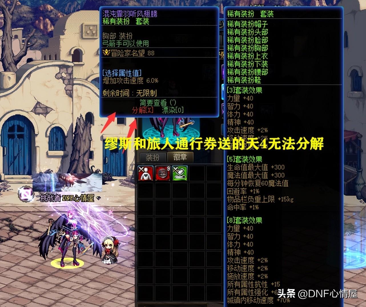 只是注意了,稀有克隆装扮升级券,已经明确的告诉你,无法合成和分解的稀有装扮,是不能使用的。而缪斯和旅人“通行券”送的天4,就注明了“无法分解”字样。