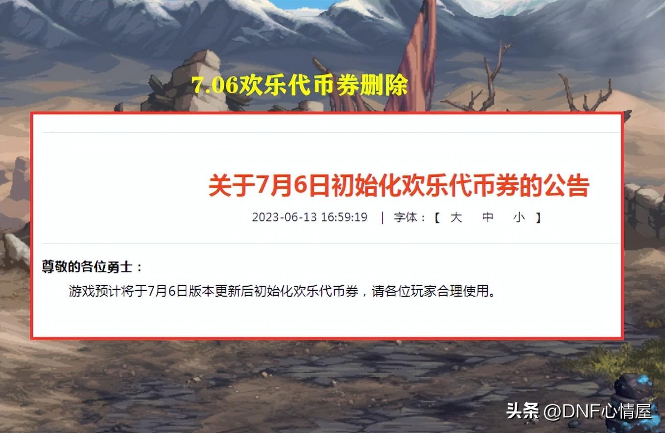 从15周年庆版本活动中,获取的欢乐代币券,在夏日礼包更新前,就会初始化清零。其实官方早在之前,就已经发布7.06版本,初始化欢乐代币券的公告。