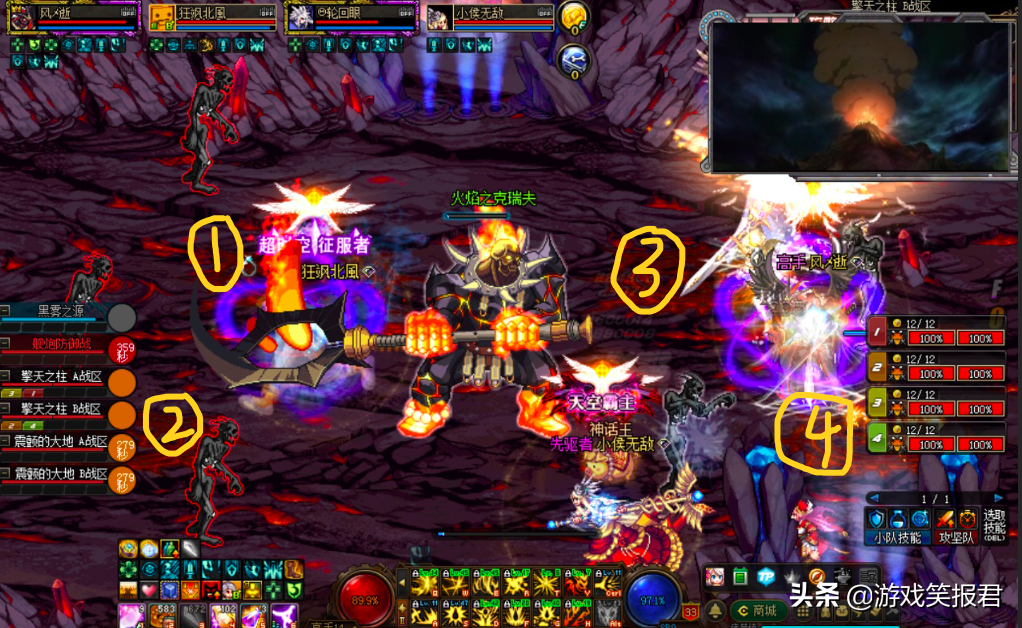 3: 去打火山的主力队,务必多联系打引字,防止意外发生,可以迅速通过正常手段打通火山 (火山打字打了30分这是土豪们不打字习惯秒秒秒的结果)