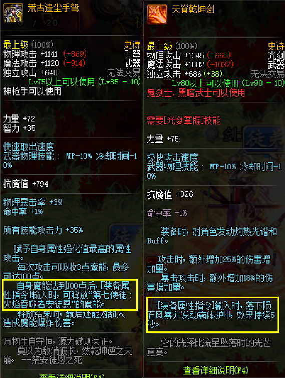 1、dnf中的不少史诗武器装备都有类似的主动释放属性,除了荒古之外大家最熟悉的应该就是阳剑和阴剑了。这些属性需要输入装备属性指令之后才能生效,不过很多新手玩家都不知道这个装备属性指令怎么用。