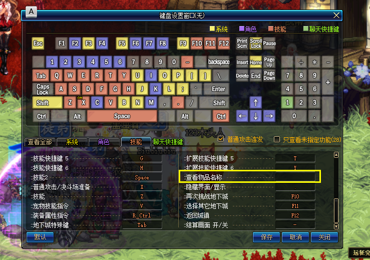 此外还有一些玩家刷深渊的时候想要隐藏爆出来的史诗,这样可以给自己一些自我安慰,也是可以这样设置的。一样是在快捷键设置中的技能设置,我们找到查看物品名称的地方,设置快捷键后按一次可以打开,再按一次可以关闭