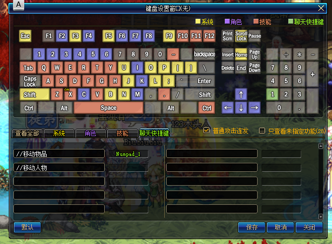 2、其实这个东西很简单,大家只要把它理解成装备技能的快捷键就可以了。系统默认的装备属性指令快捷键是Cpas Lock,也就是大写锁定的那个按键。当然它也和其它键位一样可以进行修改。