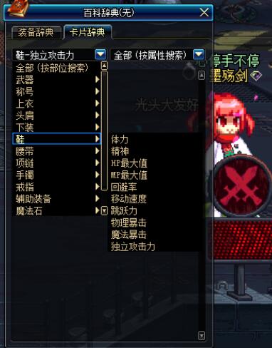 除了我说的这些,就是自己去搜了,esc打开百科词典,找到鞋子部位,找自己想要的属性,对于我们魔神来说,有用的属性,能增加伤害的属性。