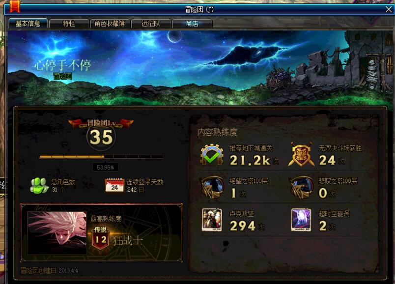 这个是我的大号,现在已经两百多次卢克了,两次漩涡,21.2k次通关记录,传说12级的红狗字,冒险团方面不要疑惑,我就是十年老玩家,因为我的号被封了,这个是我新号...飞机一时爽,封号也很爽...