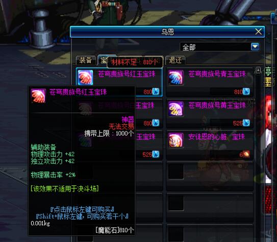 赛利亚房间右走,传送门,去素喃,左右,找到NPC九龙,他这里卖的就是性价比最高的宝珠,至少对于红狗这样的固伤职业来说,他是性价比最高的。