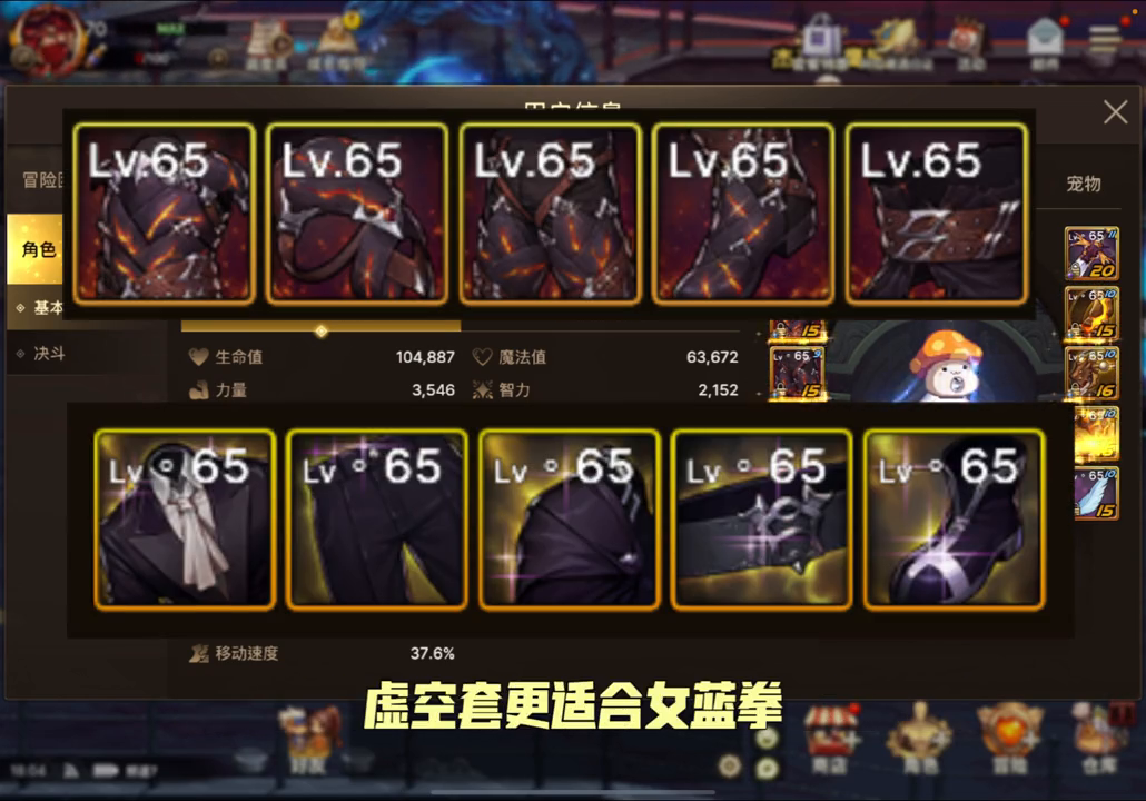 总体来看,虚空套更适合女蓝拳,而且加成比较平衡,收益更高。附魔需要注意附魔,武器收益最大化肯定是得打宝珠,如果没有可以先用30物攻过渡,千万不要买属性卡,其他正常附魔即可。