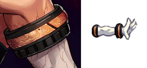 - 剑魂玩家们应该老早就“注意”到了,点阵图中右前臂带着臂铠(不是柔道的那种臂铠),手上缠绕的是绷带,在三觉立绘中也体现了这一点,只是在设定集画稿中,右手却什么都没有: