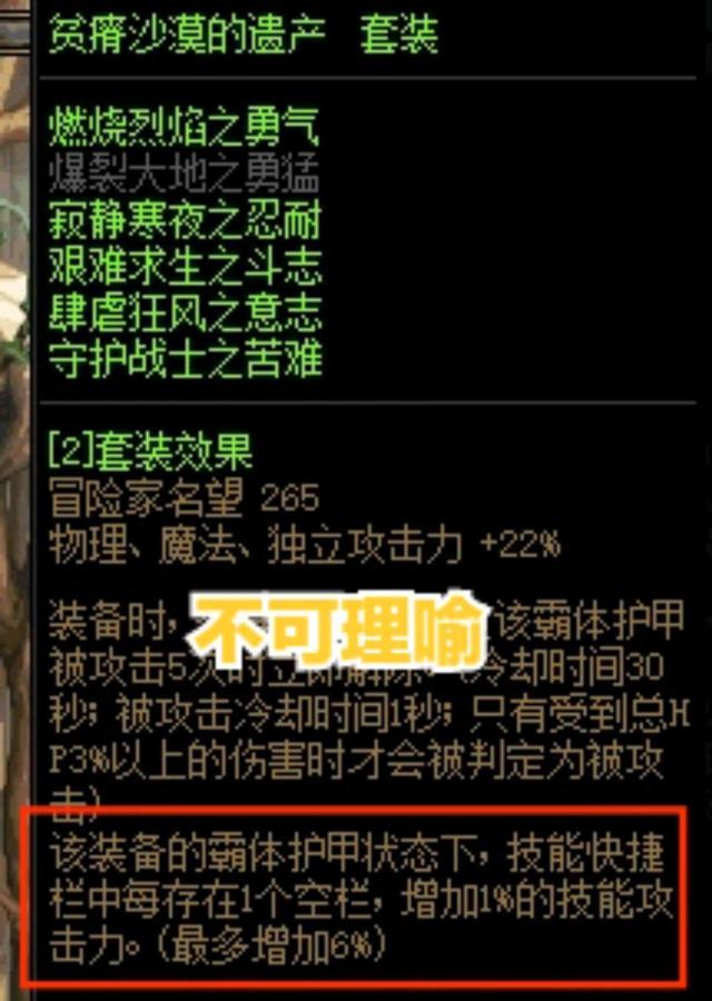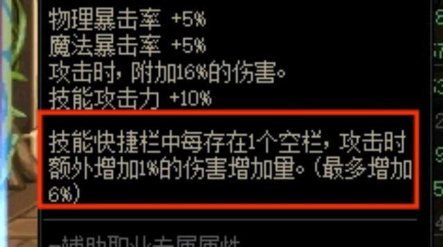技能栏存在空栏可以增加攻击力,意思是通过快捷键施放技能。总共有五件,每一件装备都是这个属性。
