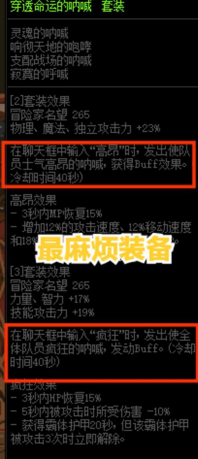 这套装备俗称打字套,进入地下城之后需要在聊天框输入指令才能发挥效果。