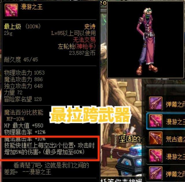 并不是剑魂才有这样的武器,神枪手也拥有一把,装备属性基础差不多。