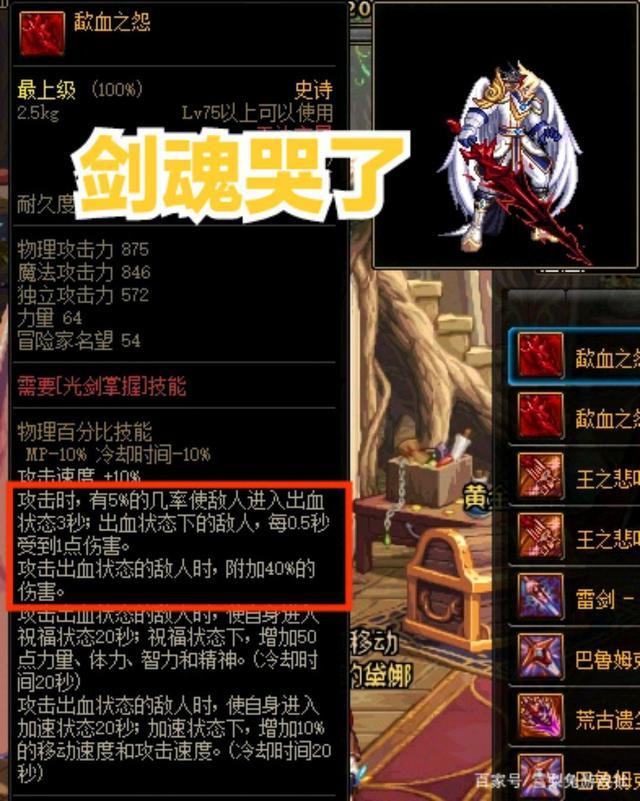 众所周知,剑魂很难触发出血状态,除非有装备辅助。。