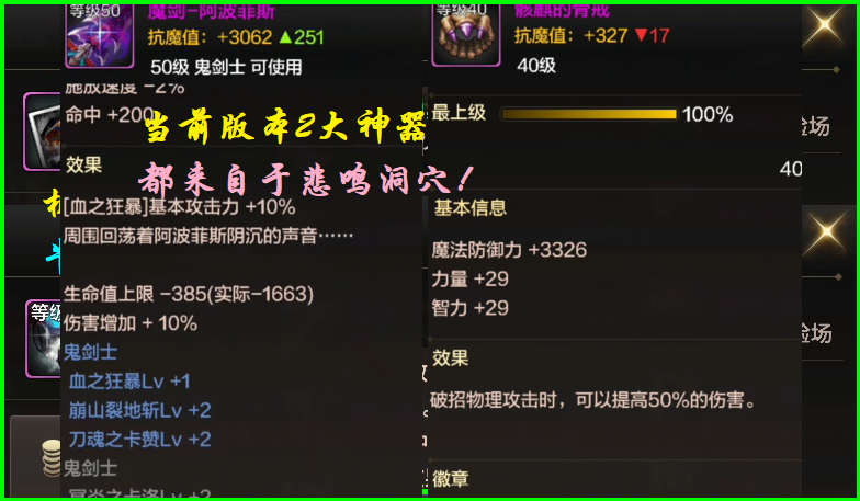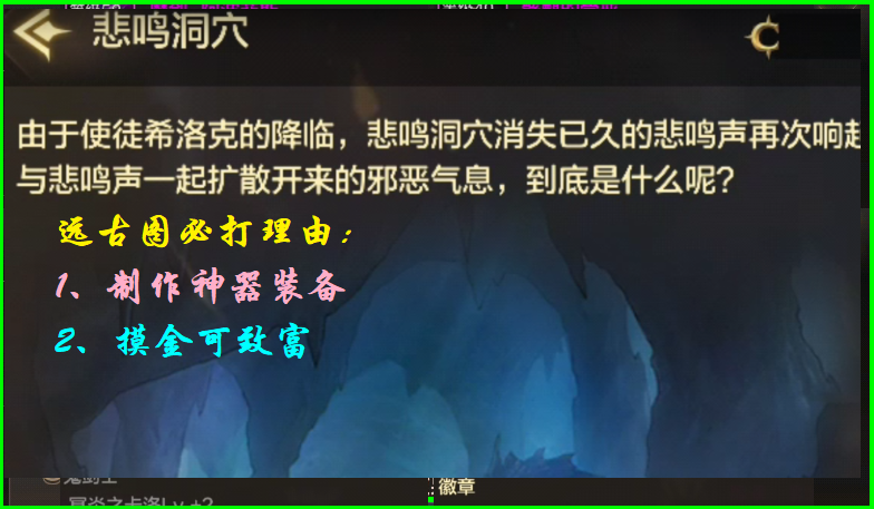 【悲鸣洞穴】 :40级的副本,从等级上来说,悲鸣洞穴其实是不如遗迹和机械牛的,但为什么称之为“最佳摸金场”呢?主要是因为这张图有2件非常高端的装备:魔剑和骨戒!