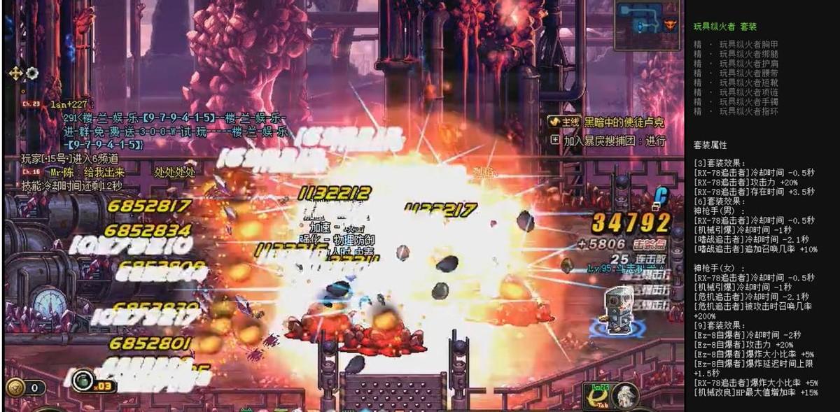 厉鬼锁魂套装加成横扫全图的蓄电激光炮与40级核心输出技能量子爆弹,搭配上激光狂热者,即可成为对男大枪提升最大的一套装备。cd极短的激光炮与半屏幕爆炸的量子爆弹是每个男大枪在异界版本中追求的毕业装备。