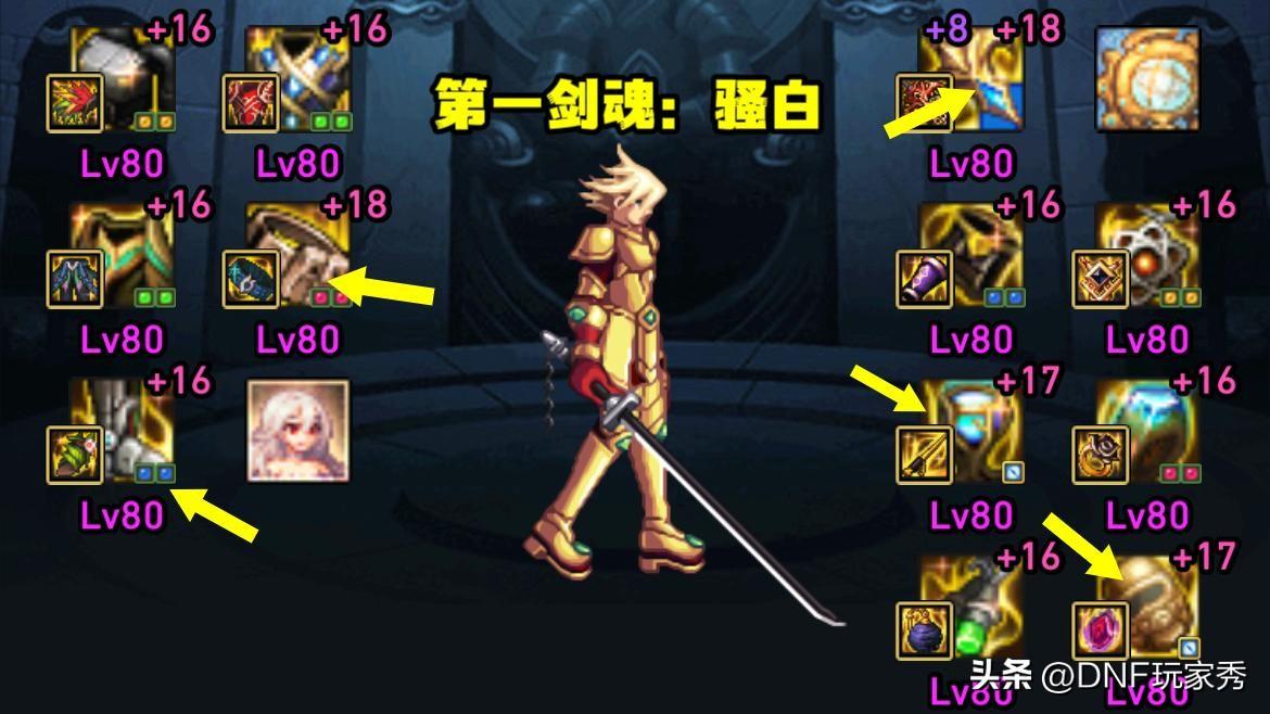 国服第一剑魂,全身增幅16,武器18,腰带18,左槽17、右槽17、鞋子17。