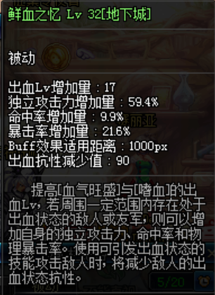 该技能属于伪随动,支持等级换装加成,独立收益存在稀释,但是提升率是不变的,1000px范围内存在出血状态的敌人或友军(包括自身)则增加自身的独立。