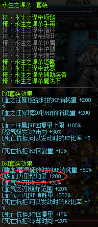 因为永生换装可以增加200点的力量,对于需要这细节提升的红眼玩家来说,是很重要的,但是因为这个嗜血很多人刷图经常习惯性去压血,所以换装太麻烦,所以很多红眼玩家不想去弄这一身换装。