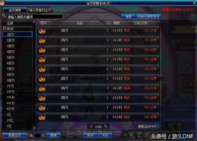 “方法二”(不推荐)适合游戏币比例高,金币寄售代币多的大区,同时你还得有闲时间,否则你还是放弃吧。