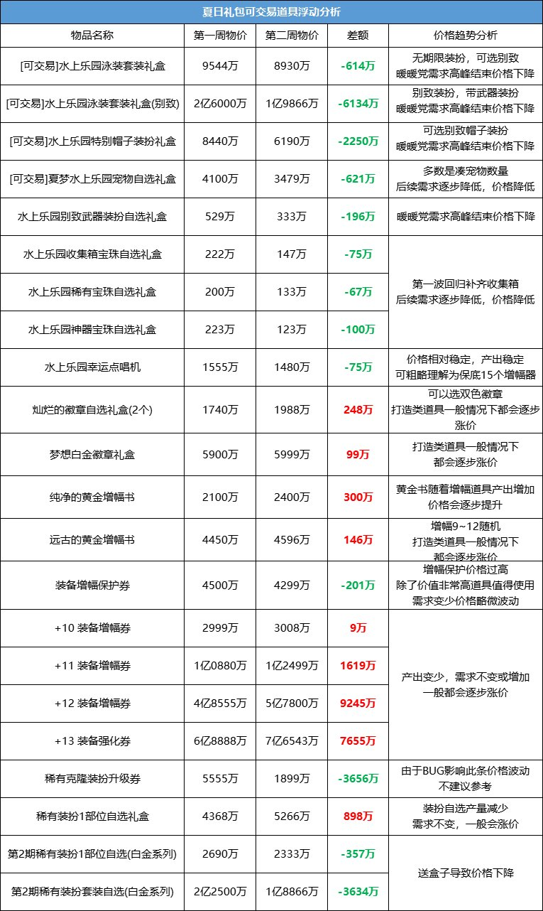 夏日礼包可交易道具浮动分析