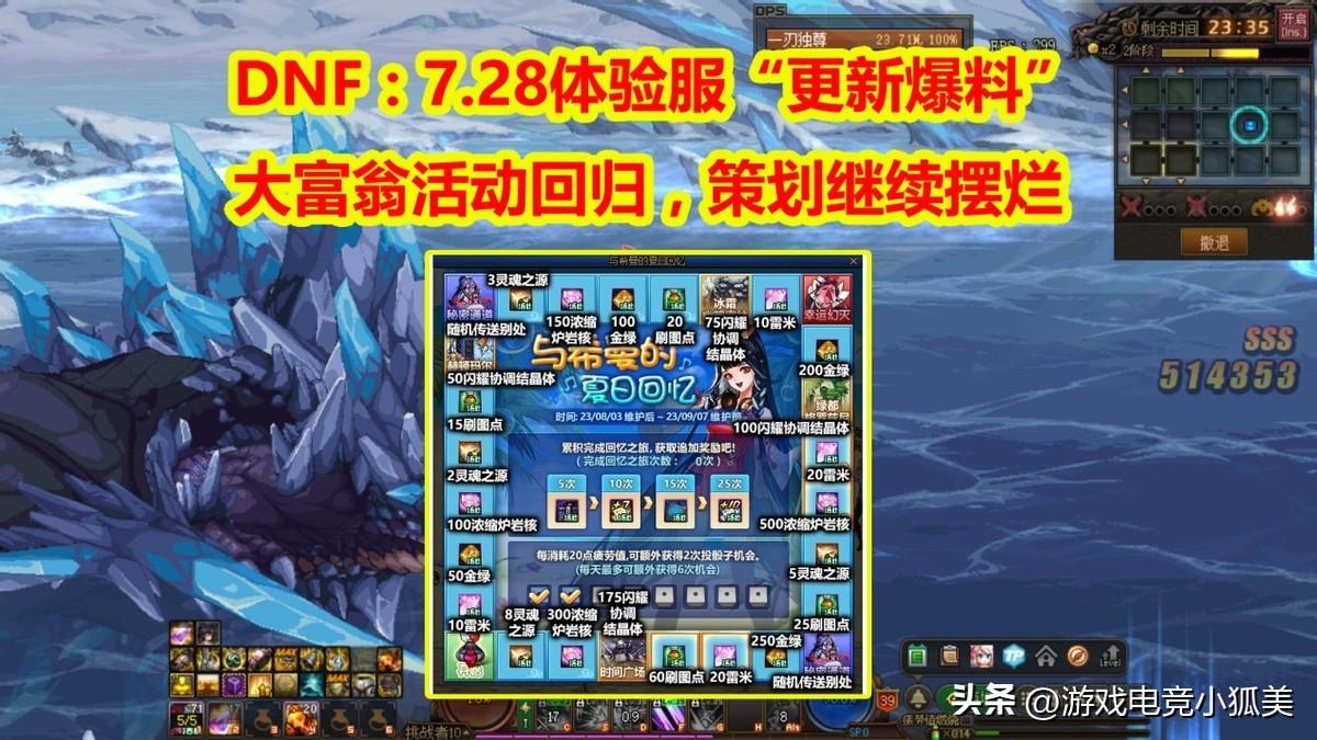 DNF:大富翁活动回归,策划继续摆烂,729体验服“更新爆料”!