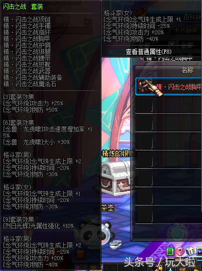 弹药这个职业当时异界套装都不怎么强,散件倒是很猛。除了上面说的大狙套,魔法流弹药的爆炎套也是很经典的一套了,对爆炎弹有着极致的加成。爆炎套最辉煌的时候是在70、80版本,一把+13武器配合空射,基本两轮子弹带走当时的BOSS,可惜后来也是随着改版淡出了玩家的视野。