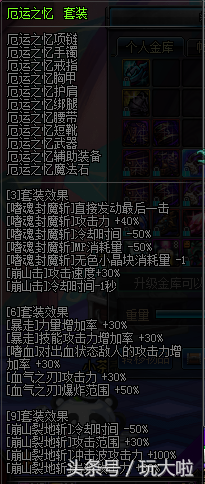 总的来说,适合搬砖的异界套都是增加技能攻击范围和攻击力的,搬砖就是要速度,大范围的攻击技能能做到1个房间1个技能就够,所以这些装备都是比较适合搬砖用的,如果你碰巧有这些职业,不妨做1套试试,保证你会有惊喜。